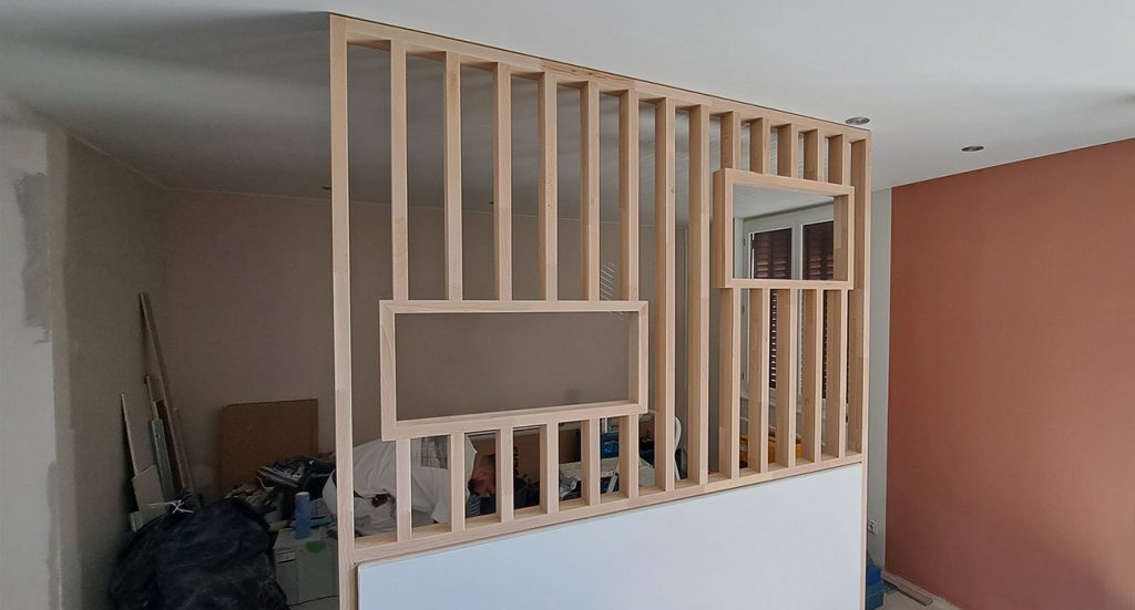 Claustra en hêtre naturel avec niches sur mesure à Saint-Jorioz